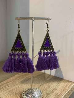 Bohemian Triangle and Long Tassel Colourful Earrings