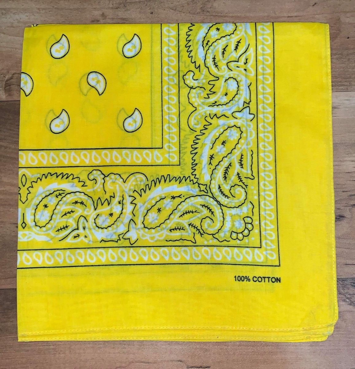 Bright Yellow Paisley Design Bandana - 100% Cotton