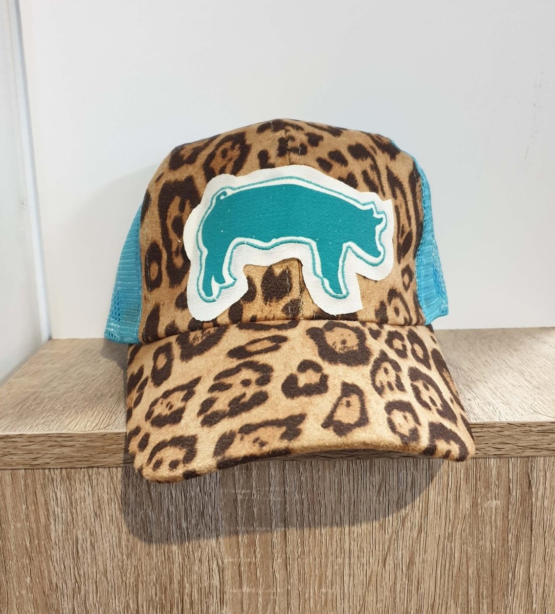 Girl's Sparkle Pig Leopard Print and Turquoise Mesh Cap