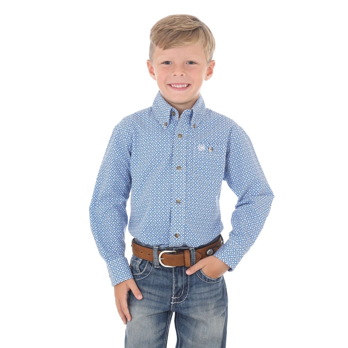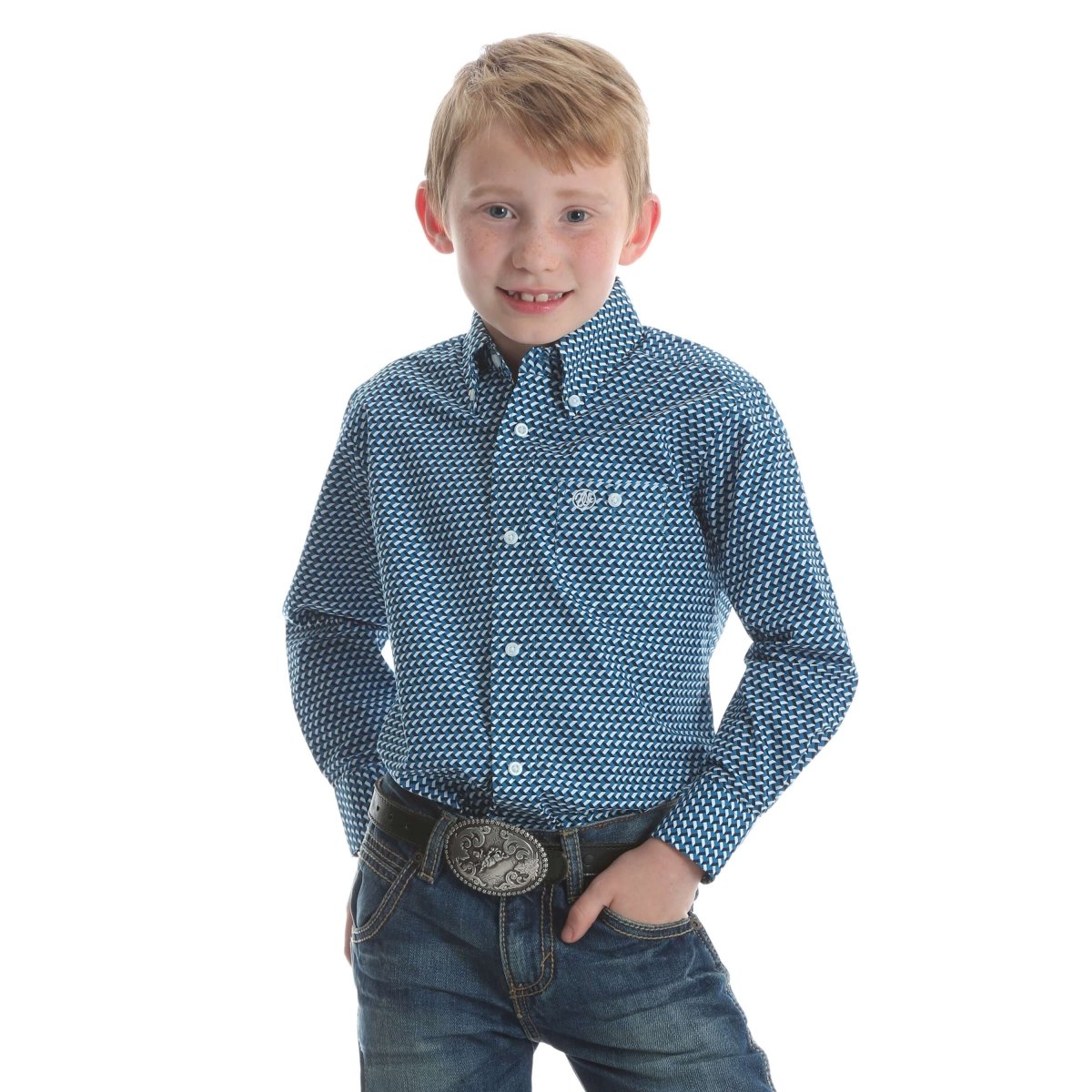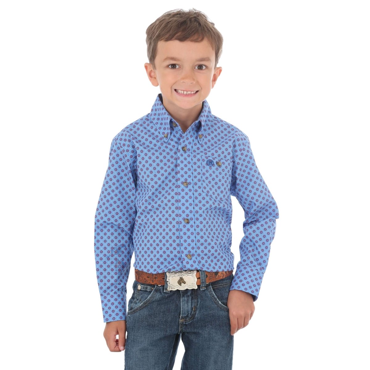 Boy's Wrangler Classic Printed L/S Shirt Blue