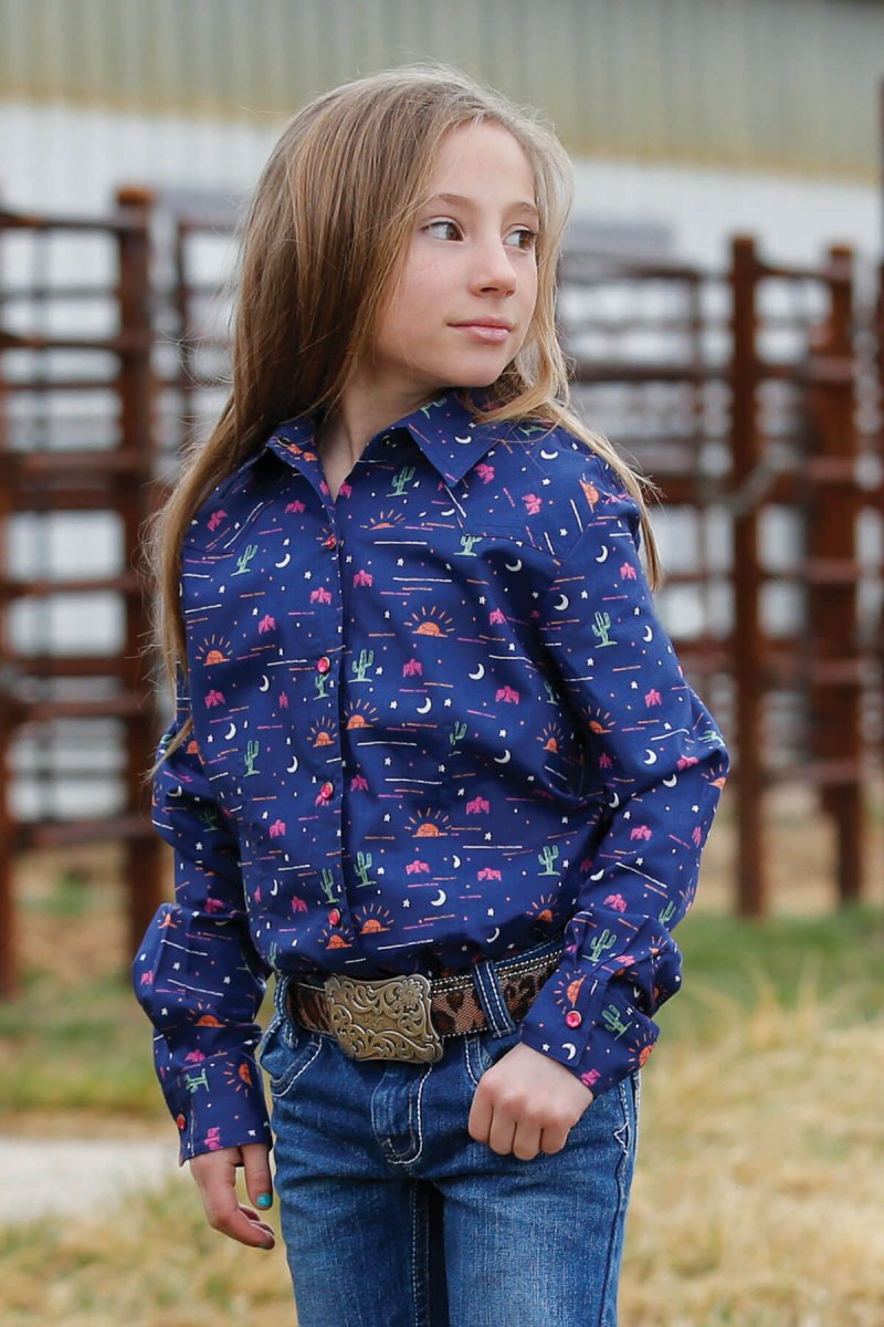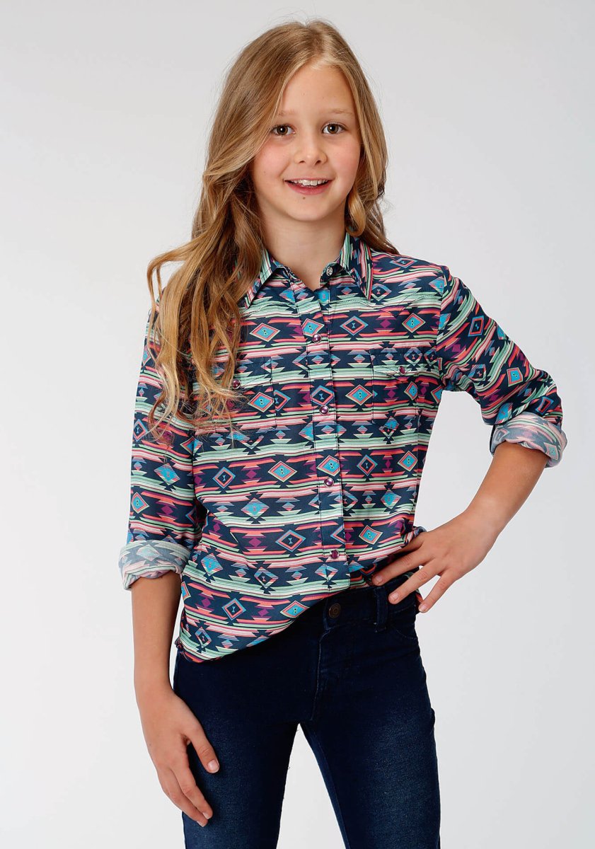 Girl's Roper Five Star Blue Long Sleeve Shirt