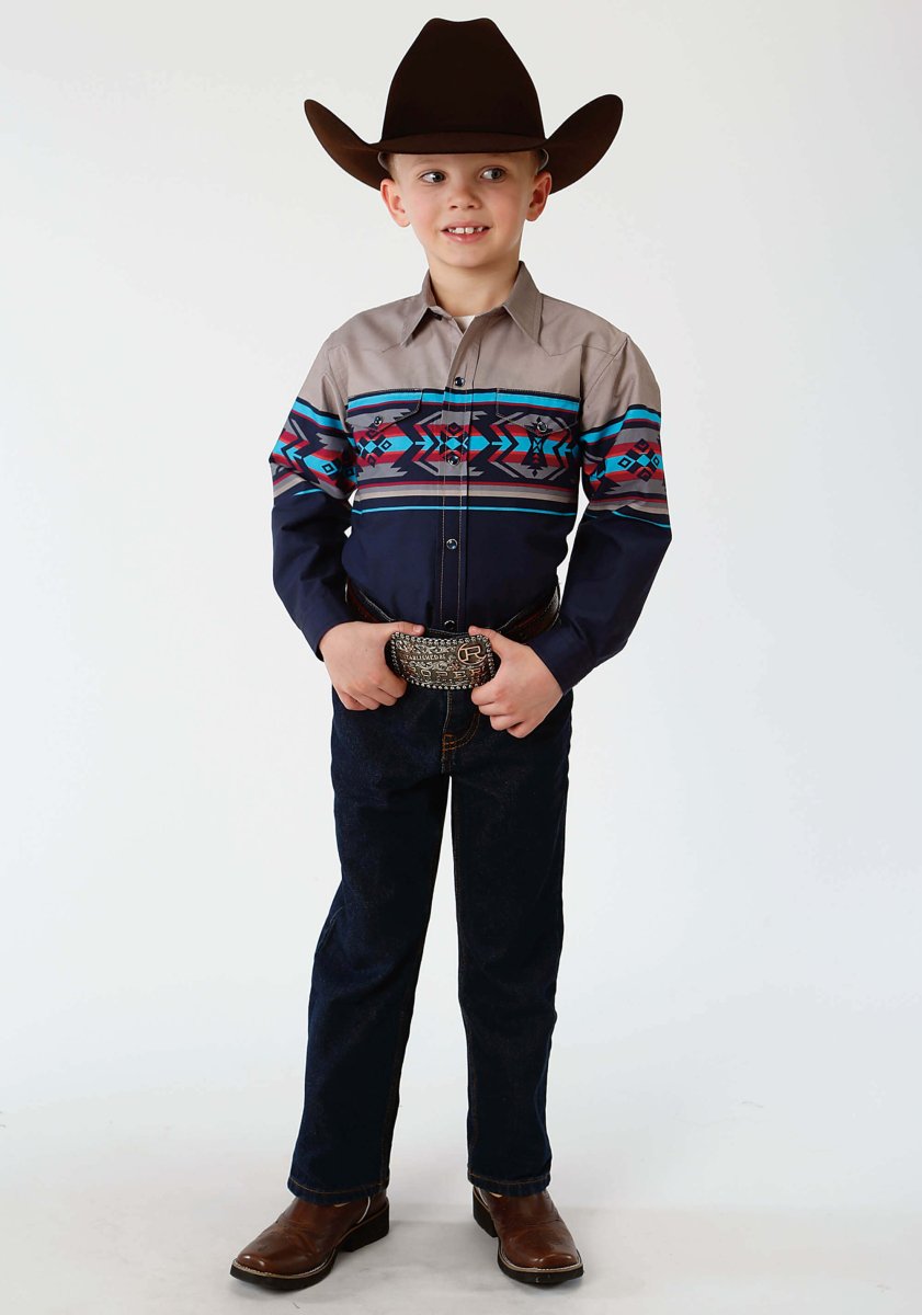 Boy's Roper Blue L/S Shirt - West Made Collection