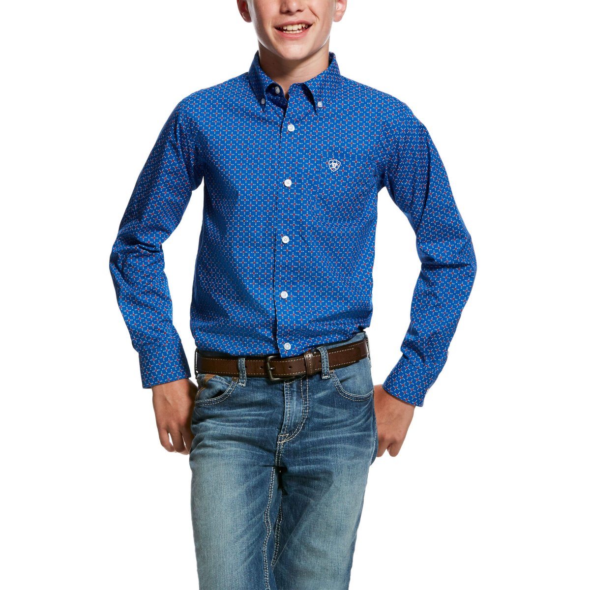 Boy's Ariat Ohlinger Long Sleeve Print Shirt - Classic Blue
