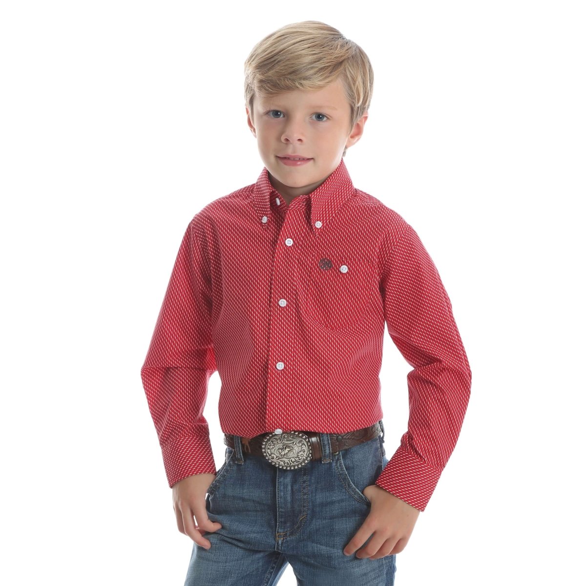 Boy's Wrangler Classic Printed L/S Shirt Red