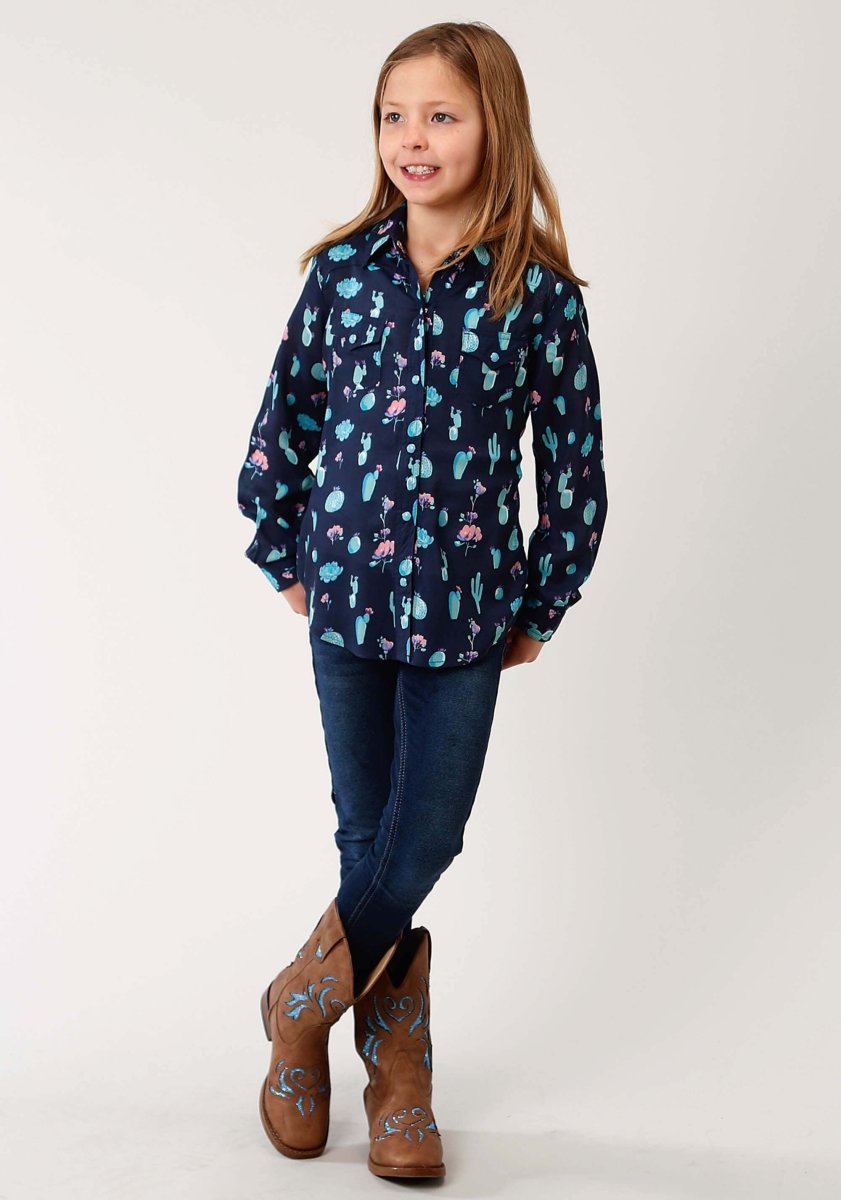 Girl's Blue Roper Cactus Print Shirt