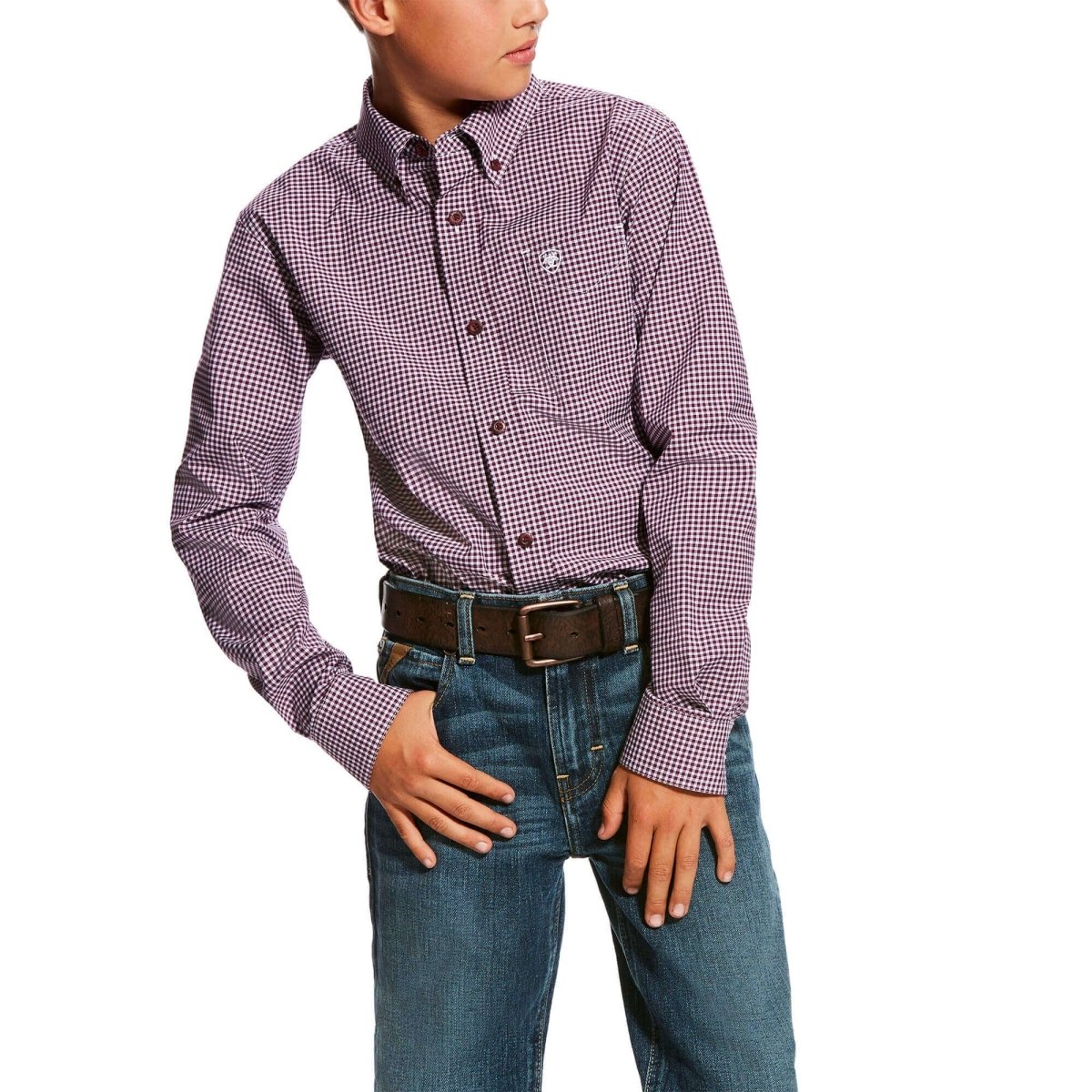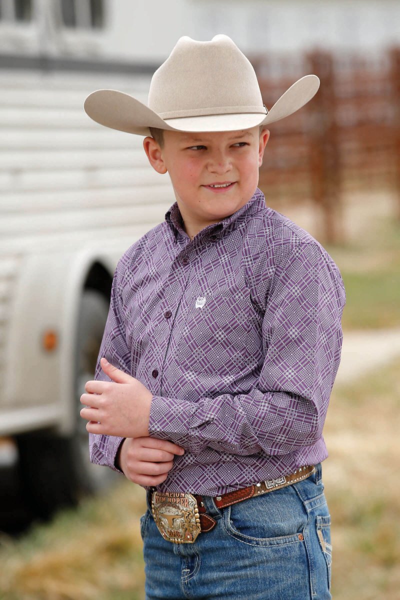 Boy's Ariat Doug L/S Purple Dahli Performance Shirt