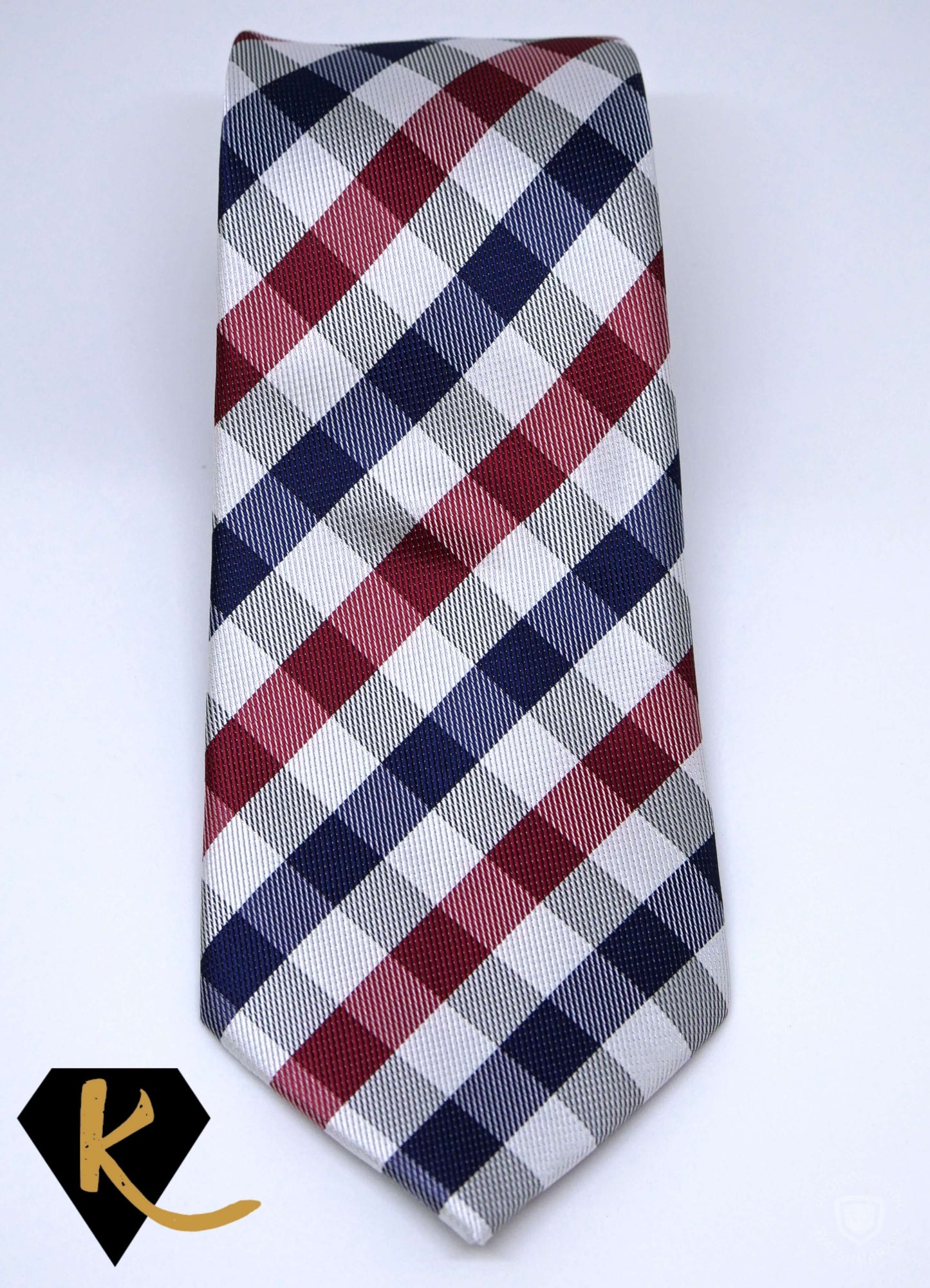 Men's Navy Red and White Plaid Necktie