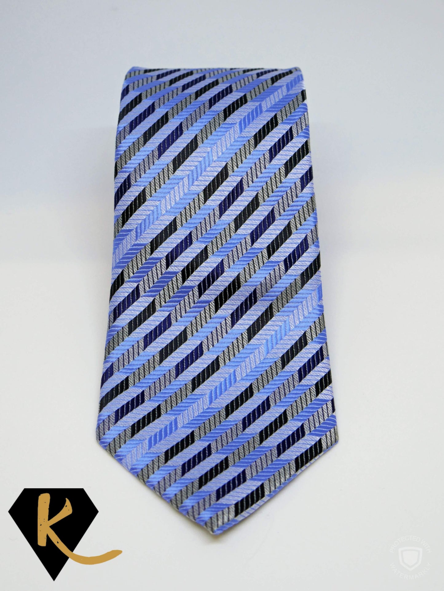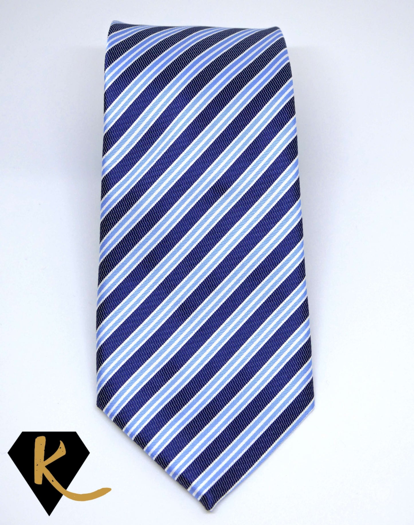 Men's Light Blue Navy and Blue Striped Necktie
