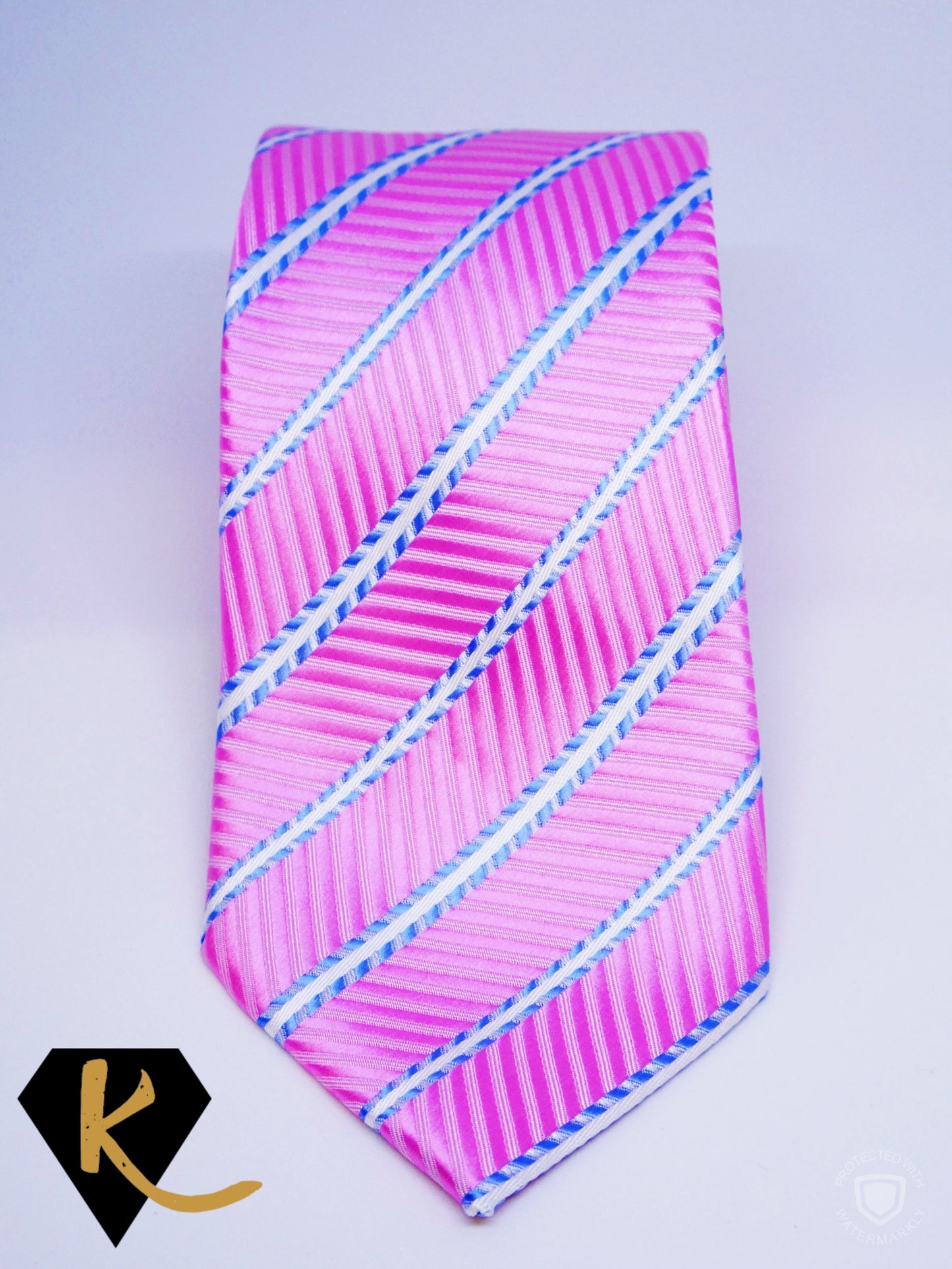 Men's Pink and Blue Striped Necktie