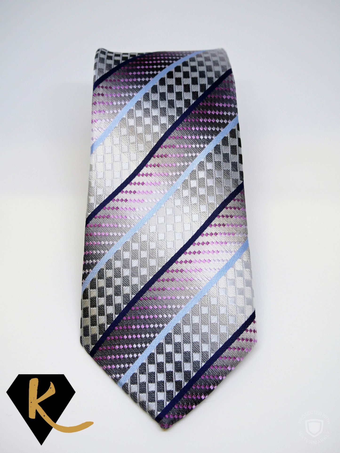 Men's Silver Geo Striped Necktie