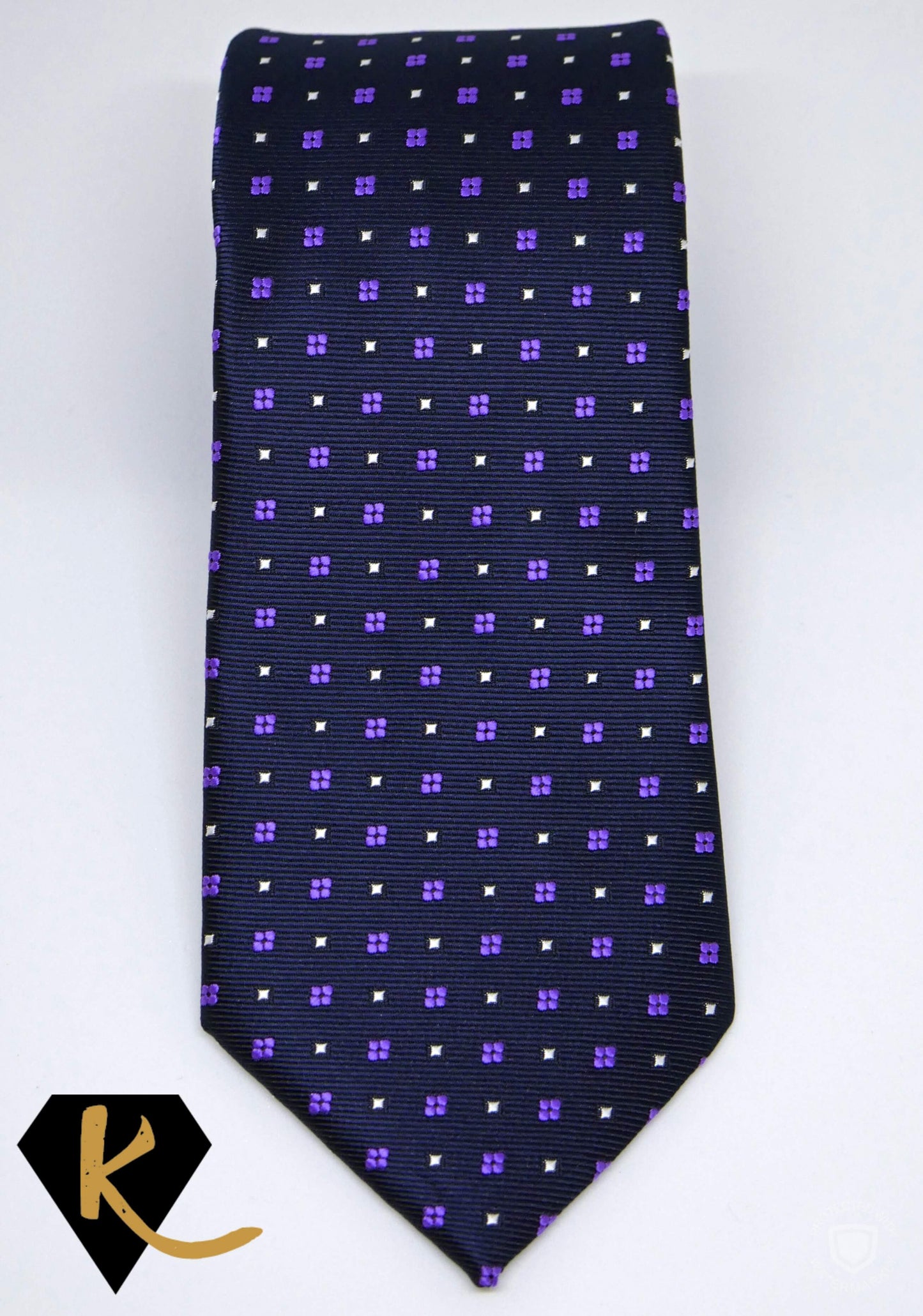 Men's Navy and Purple Patterned Necktie