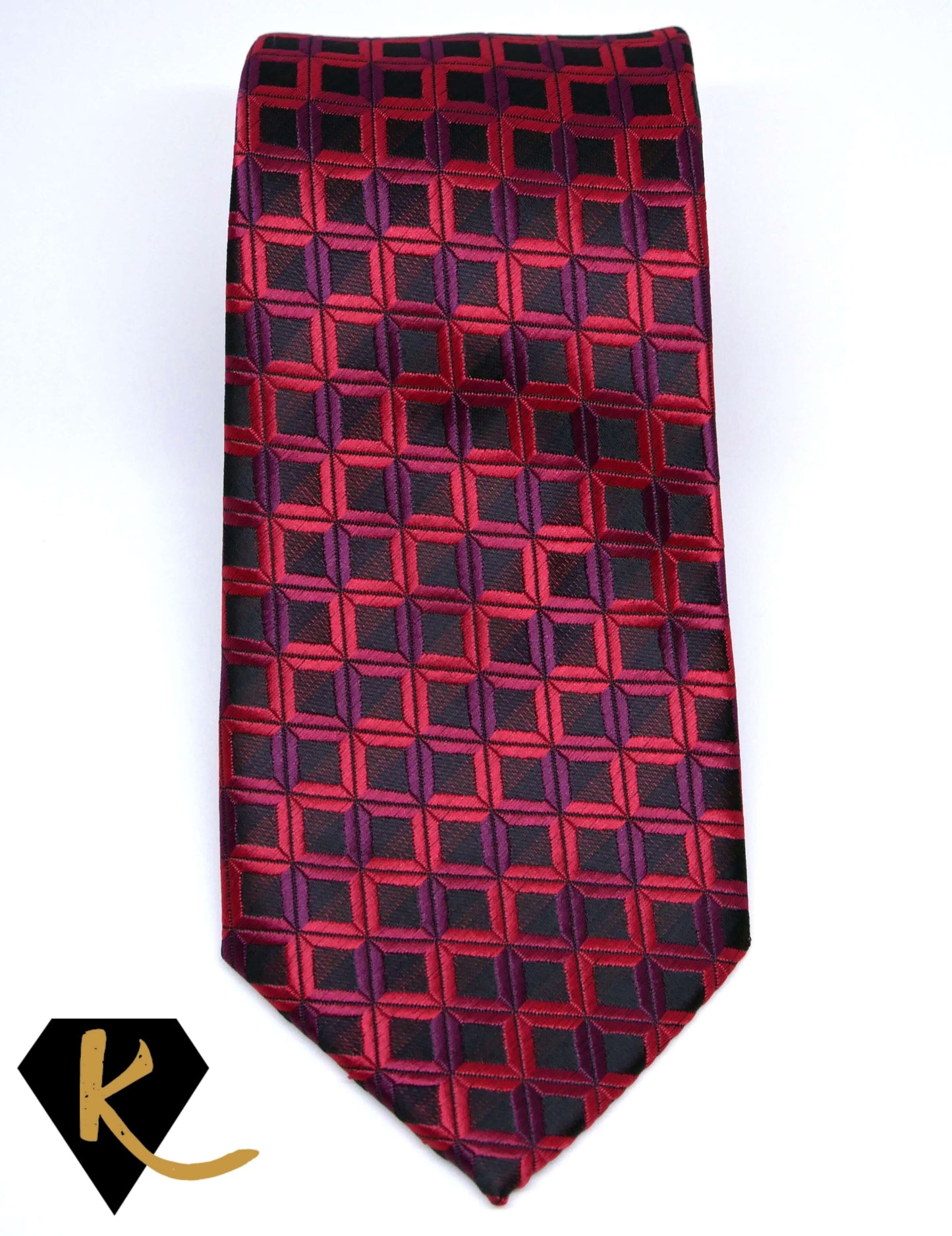 Men's Red and Black Geometric Necktie