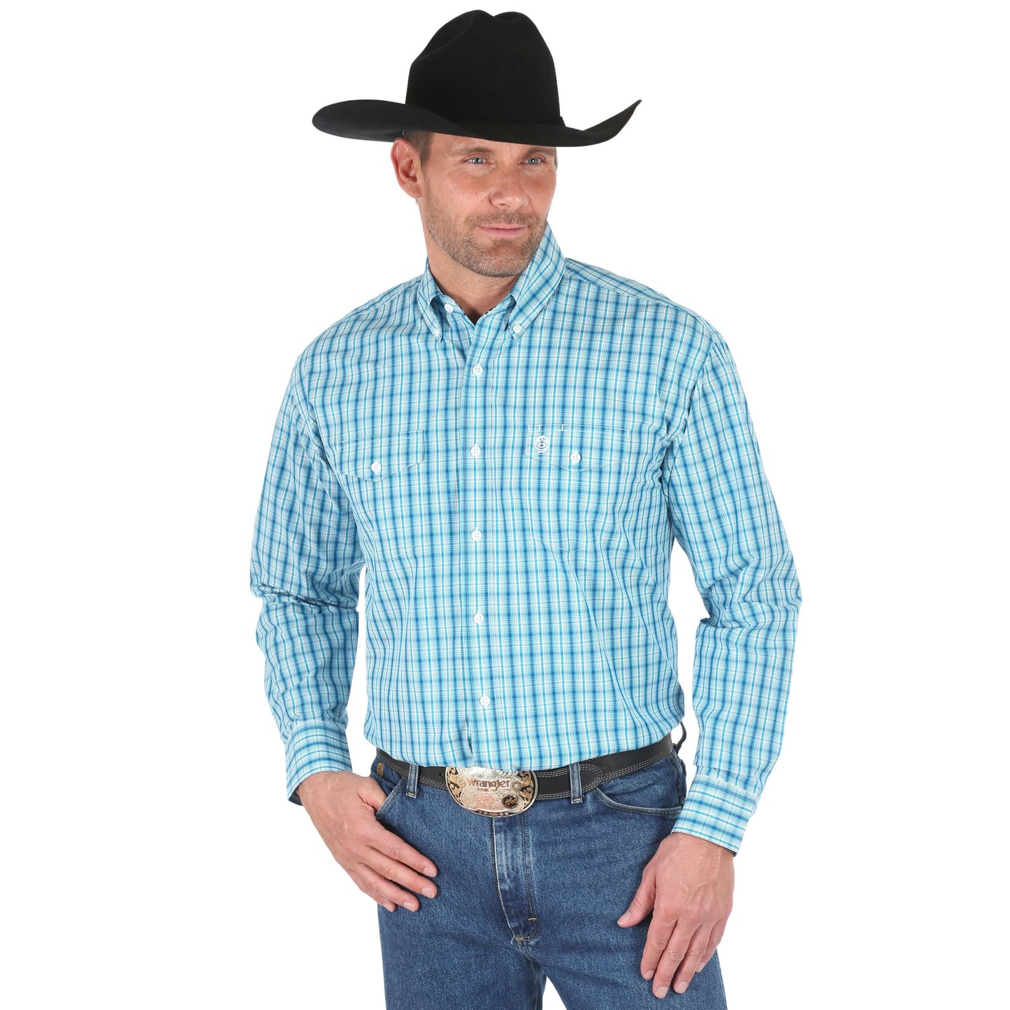 Men's Wrangler George Strait Plaid Shirt L/S Teal