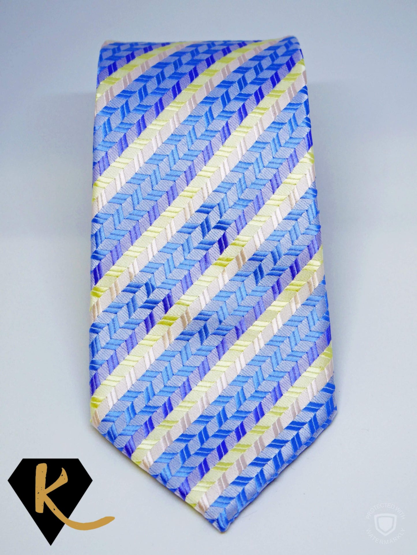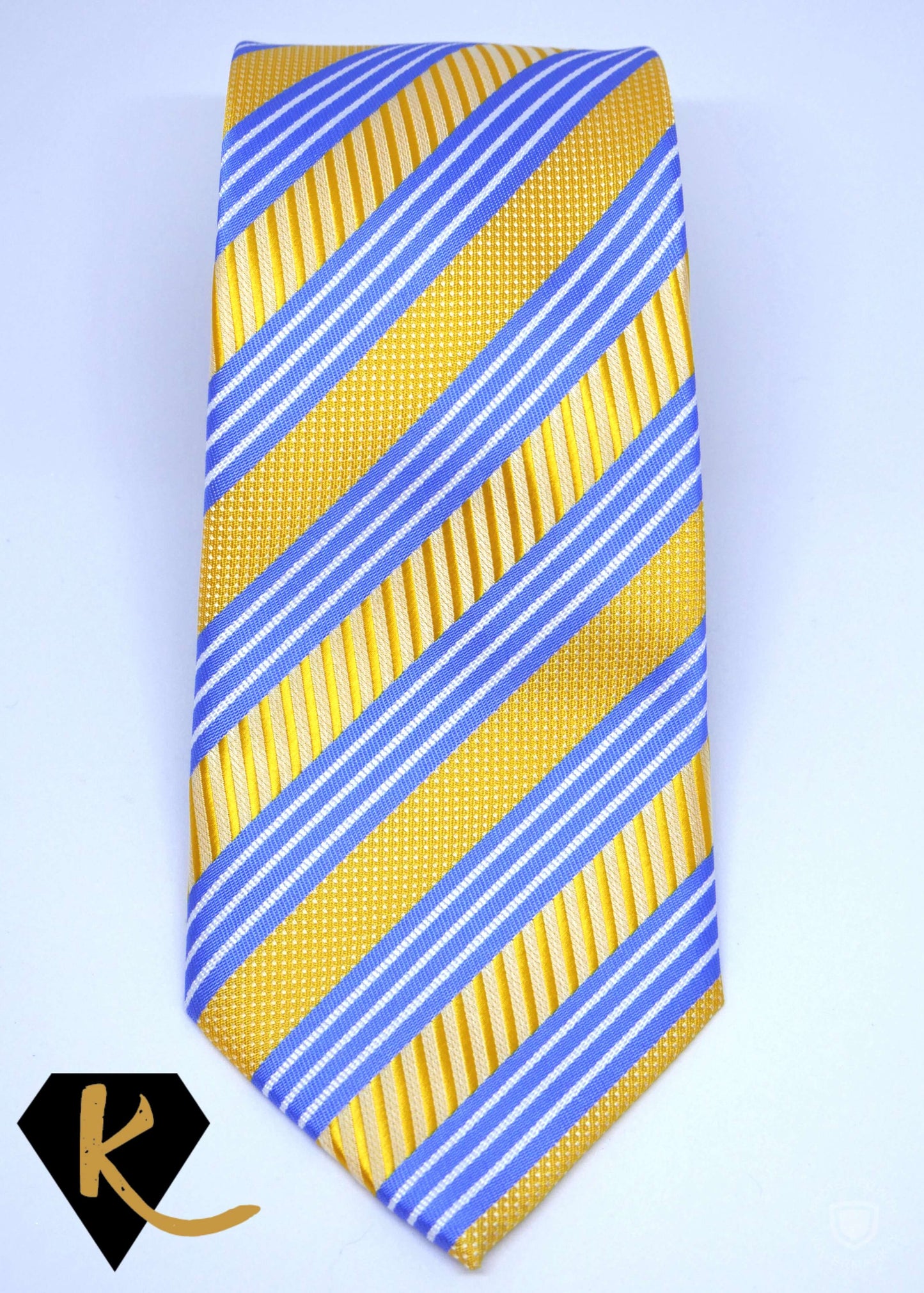 Men's Yellow and Blue Striped Dotty Necktie