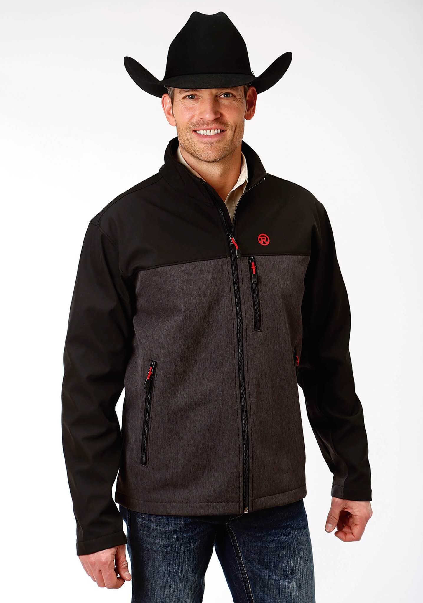 Mens Roper Grey Textured and Solid Black Bonded Softshell Jacket