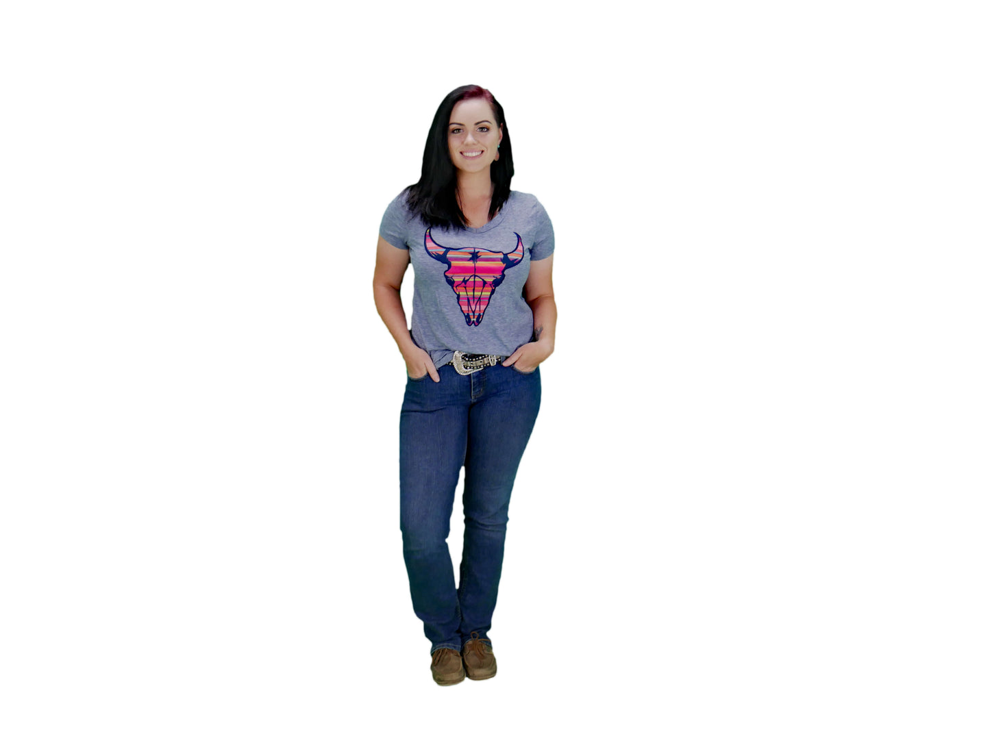 Rainbow Bull Skull Graphic Tee Shirt