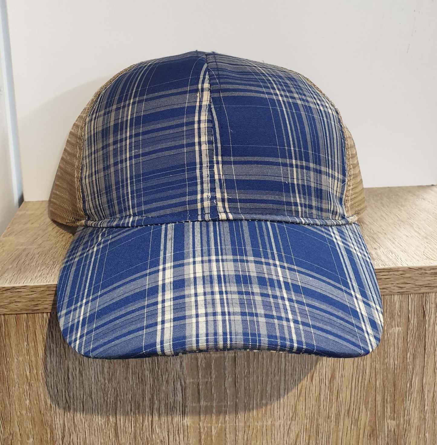 Southern Junkie Blue Plaid and Tan Mesh Cap