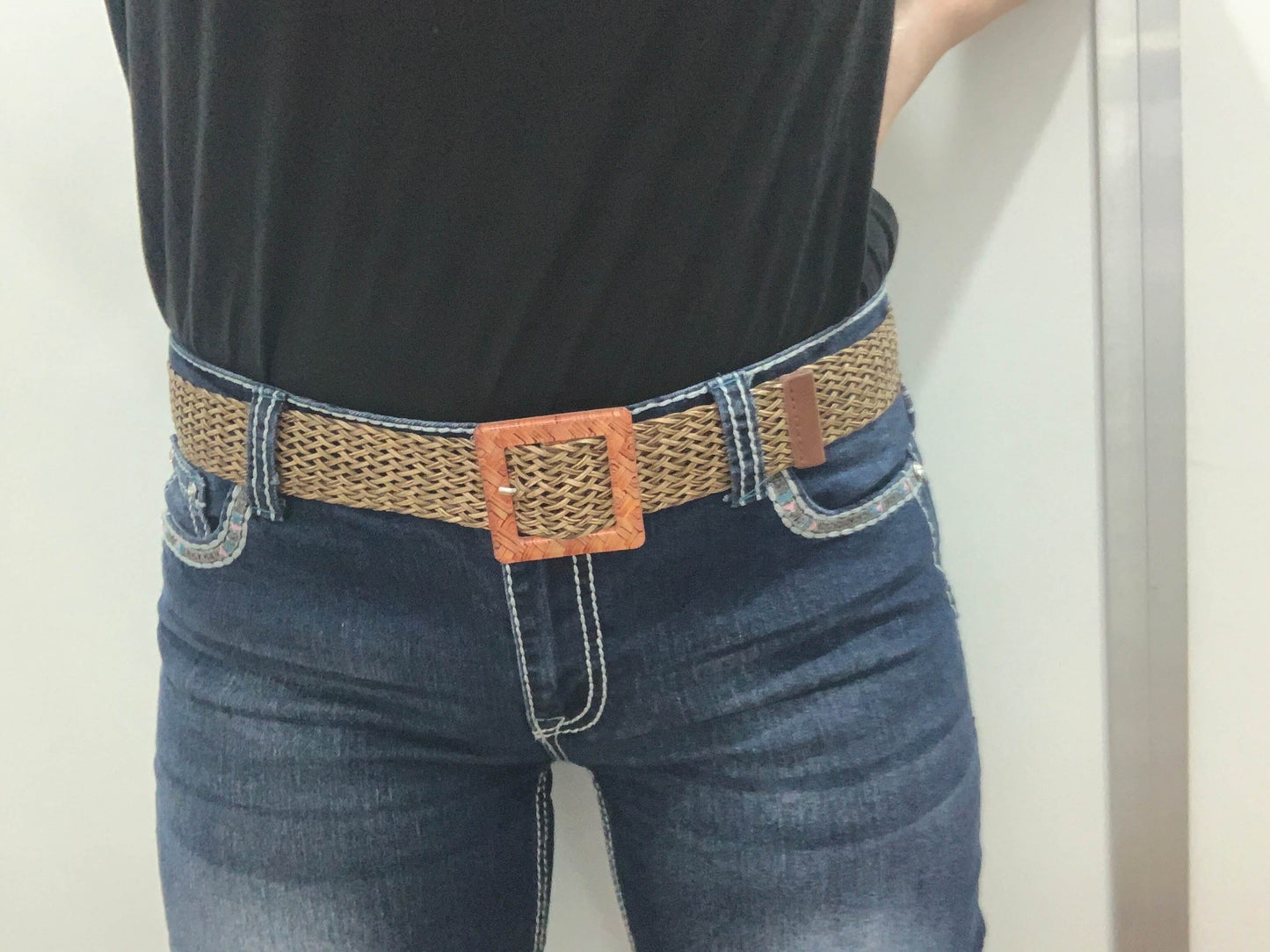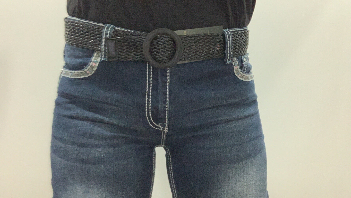 Women's Black Woven Boho Braided Belt