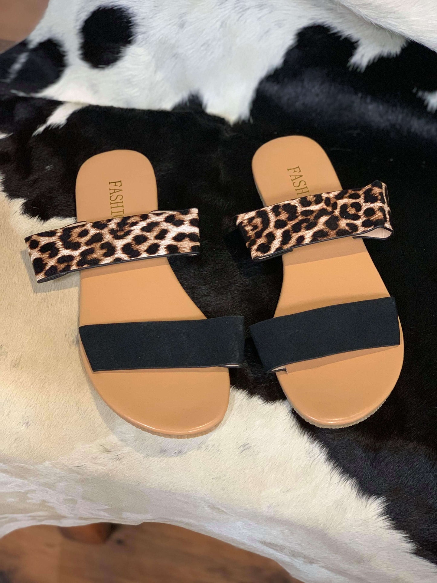Women's Black and Leopard Print Sandal