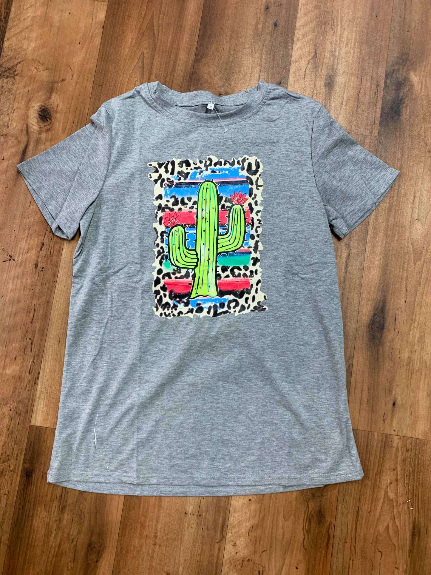 Women's Leopard and Cactus Print Graphic Tee Shirt