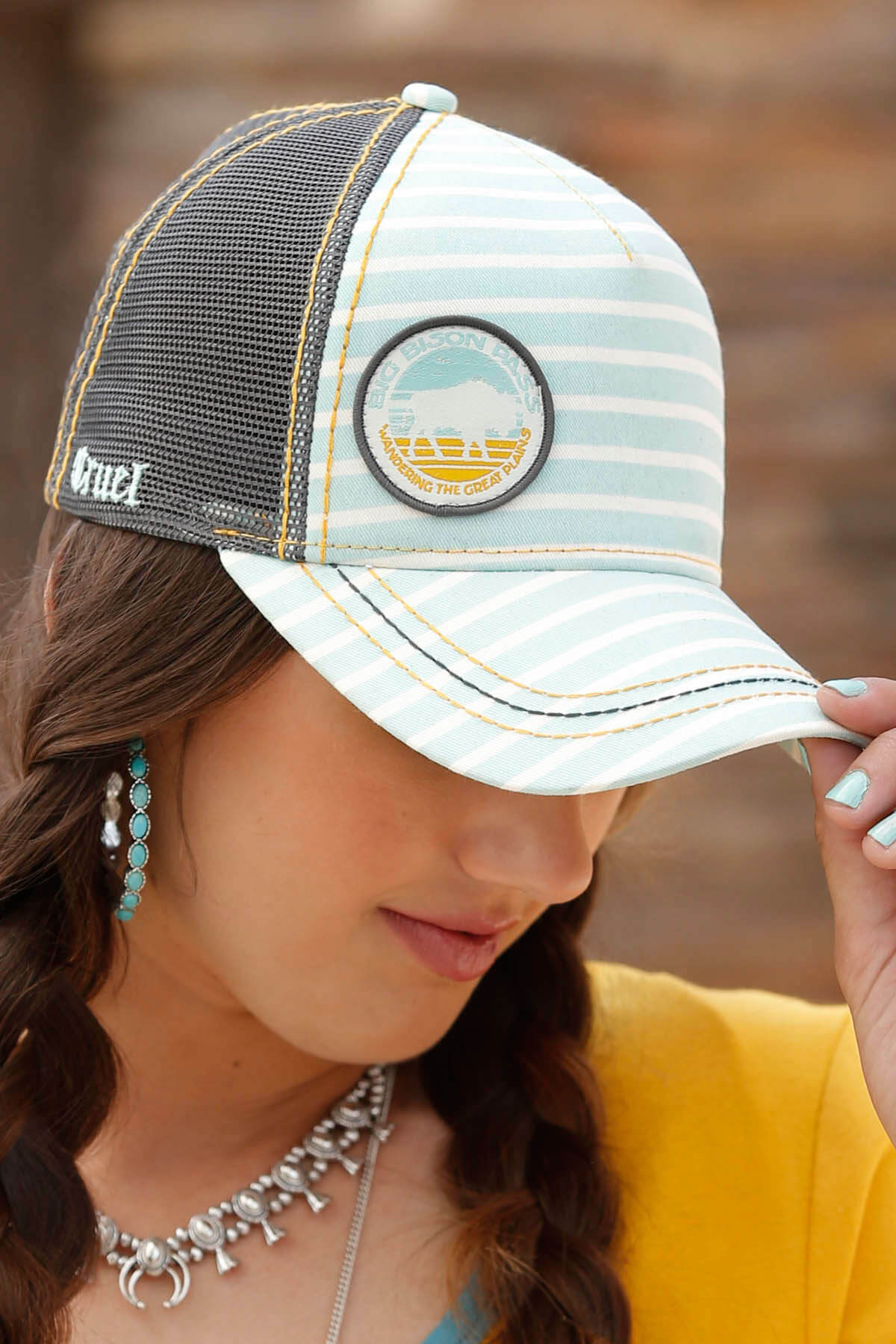 Women's Cruel Denim Light Blue Stripe Trucker Cap
