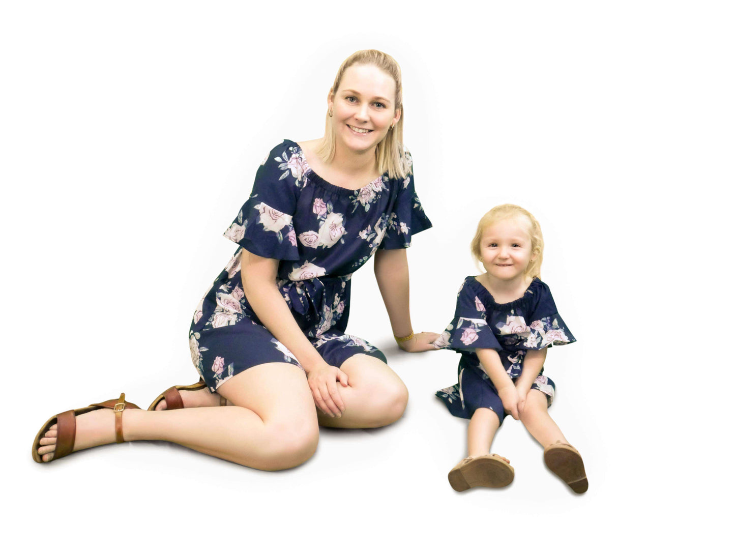 Women's Navy Floral Off The Shoulder Dress - Matching Mummy and Me