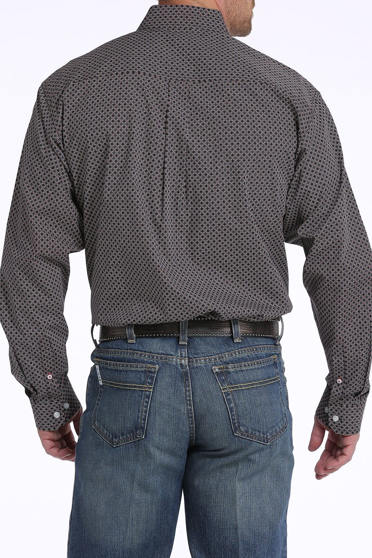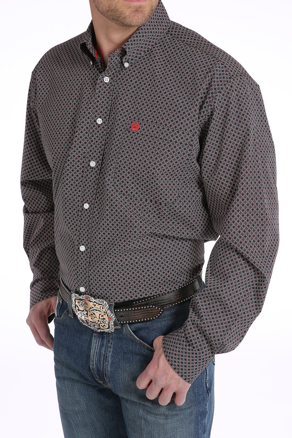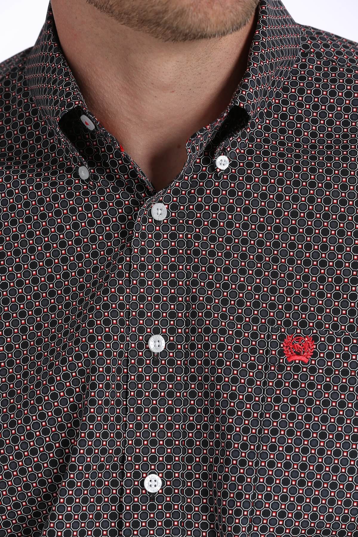 The Men's Cinch Black and Red Honeycomb Geometric Print Shirt: