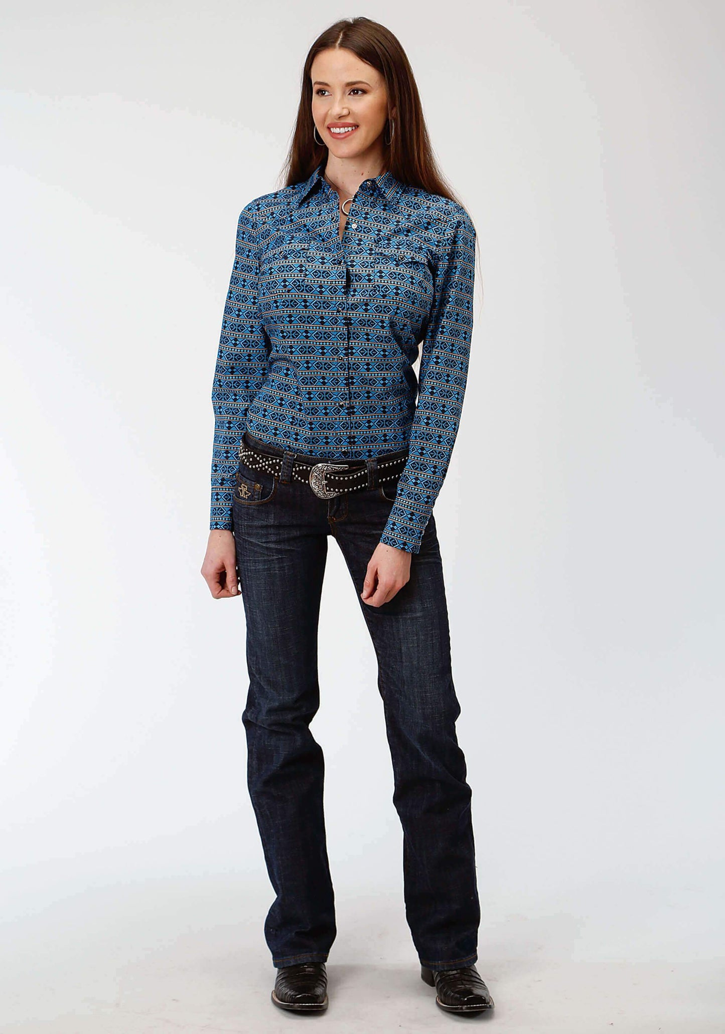 Women's Roper West Made Blue Aztec Long Sleeve Shirt